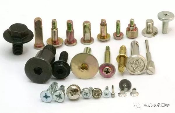 常見(jiàn)的電機(jī)緊固件包括螺栓、螺釘、鉚釘、螺母、墊圈、銷釘、保險(xiǎn)絲(專用電機(jī)使用)等。緊固件由鋼、合金鋼、鋁合金、鎳基合金(耐高溫耐腐蝕)、鈦合金(耐高壓耐高溫)等制成。